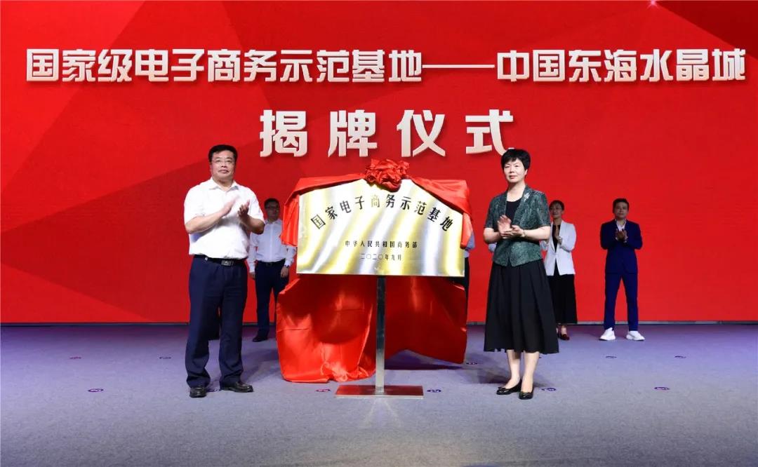 活动中,中国电信视连时代集团、贝壳视频、阿里国际站江苏运营中心、思亿欧(谷歌)江苏运营中心还与江苏东海水晶产业发展集团举行签约仪式。吴海云、高美峰还共同为国家级电子商务示范基地——中国东海水晶城揭牌。